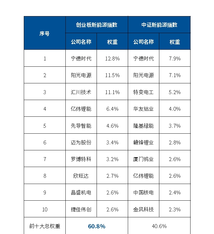 表:创业板新能源权重更多向全球优势龙头倾斜