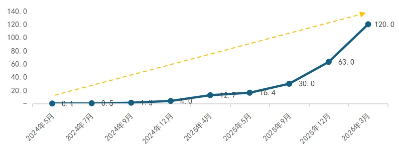 图1:豆包大模型日均Tokens使用量(万亿)