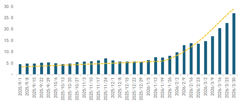 资料来源:Open Router,截至2026年4月9日,横坐标为当周起始日