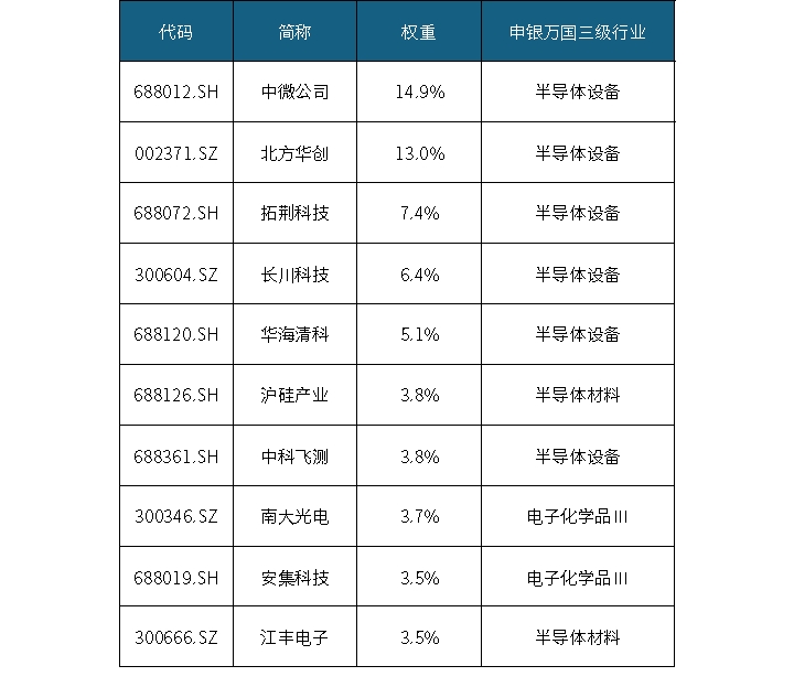 表1:中证半导体材料设备主题指数前十大成份股