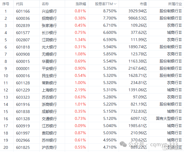 除此之外,兴业、光大、平安这些股份行,股息率都超过了5%,估值更低,后续的弹性也更大;南京、上海、成都这些优质城商行,股息率也在4.8%到5.3%之间,区域信贷需求旺,表现也很亮眼。