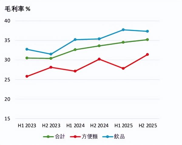 产品提价直接拉动公司毛利率,成为净利润增长的核心动力。数据显示,从2022年到2025年四年间,其饮品业务毛利率分别为31.95%、32.10%、35.3%和37.5%。在毛利率同比提高带动下,饮品业务实现股东应占净利润22.74亿元,同比增长18.5%,较2024年多赚了3.55亿元。