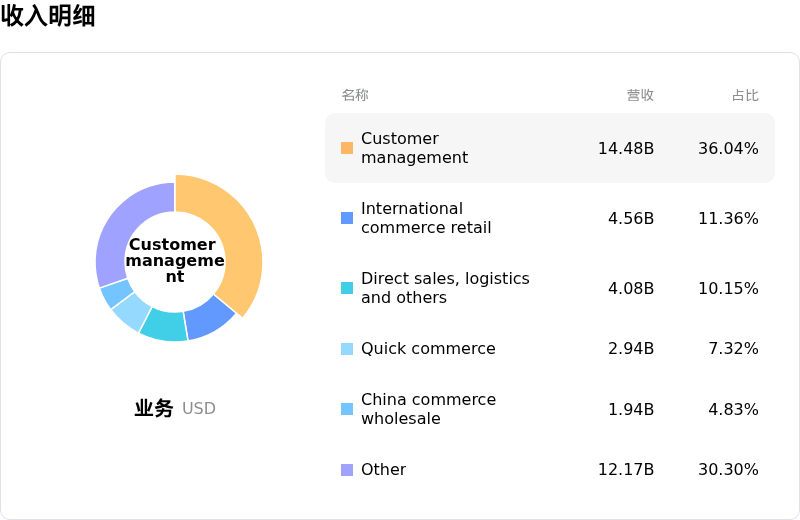 阿里巴巴 (BABA) 处于软件与信息技术服务行业,最新年度营业收入$138.07B,处于行业5,净利润$17.94B,处于行业6。「公司简介」
