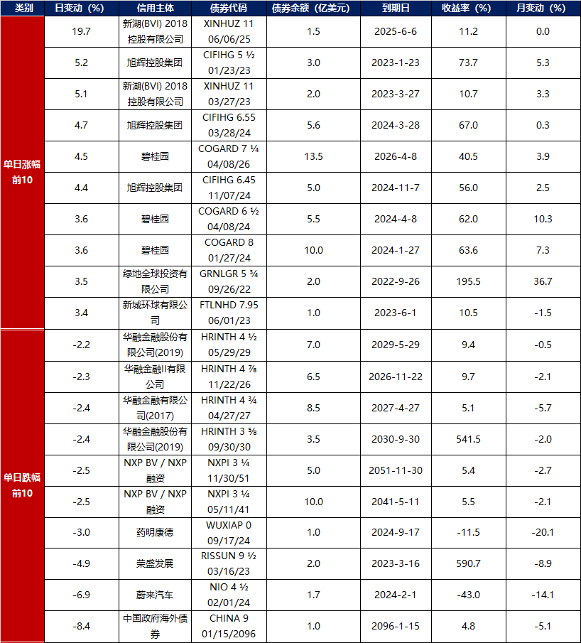 3. 中资美元债每日价格变动(截至4月14日收盘)