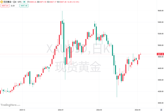 现货黄金目前交投于每盎司4845美元附近,较1月底的峰值已下跌约10%,即便地缘政治风险持续加剧,金价仍已陷入回调区间。这一走势标志着与去年涨势的明显逆转——当时尽管利率上升,但央行的买入仍为金价提供了支撑。