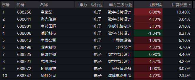 【科创芯片ETF汇添富(588750)标的指数前十大成分股】