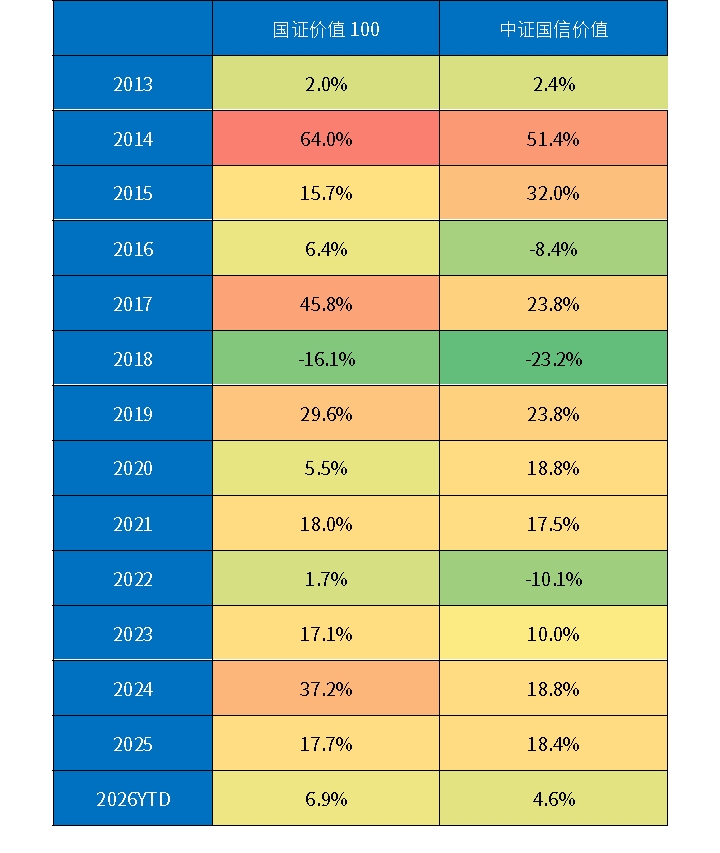 三、风格验证:分年度表现印证国证价值100的价值纯粹性
