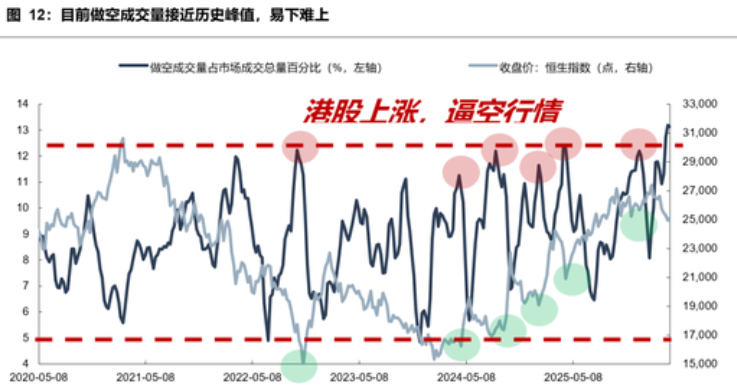 (1)当前做空成交量占比约12%,已与21-22年港股类似,触及历史高位。做空高企不预示市场下跌或者反弹,港股的核心驱动因素仍在于基本面变化,但如果行情回暖,可能触发逼空行情放大反弹力度。