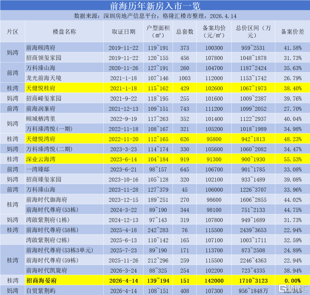 海晏府将前海新房备案价拉至历史最高,也意味着海晏府把前海核心区正式推入14万 /平的梯队,前海的新房历史正式打破长期“10万 ”的价格惯性。