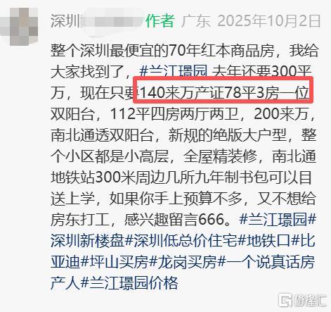 比如位于坪山马峦的兰江璟园,去年9月168套78~112平精装住宅,备案均价约27200元/㎡,总价区间约210~313万,依靠现房票安置落地,截止2026年4月14日深圳房地产信息平台显示卖剩80套。