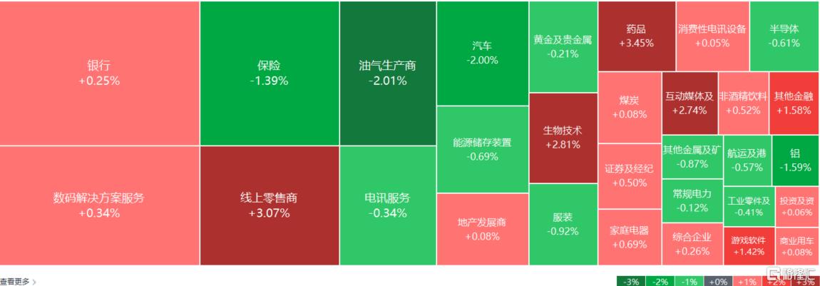 权重科技股齐涨,京东集团涨超4%,阿里巴巴、百度涨超3%,快手涨超2%,美团、网易、腾讯控股涨超1%,小米微涨。