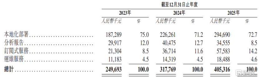 按交付方式来看,本地化部署是主要的交付方式,报告期内的收入占比超过了70%。