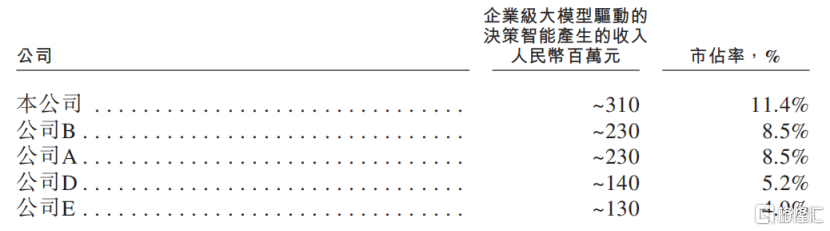 企业级大模型驱动的决策智能市场的竞争格局,来源:招股书