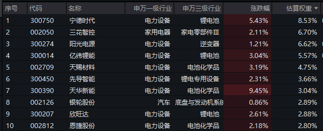 电池ETF汇添富(159796)标的指数成分股多数冲高,天华新能暴涨超9%,宁德时代“王者归来”大涨超5%,总市值重回全市场第三,亿纬锂能、天赐材料等涨幅居前!