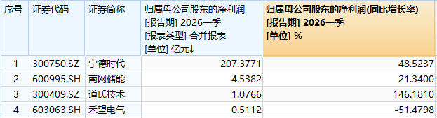 【电池ETF汇添富(159796)标的指数26Q1成分股业绩】