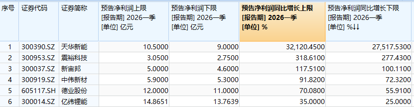 【电池ETF汇添富(159796)标的指数26Q1成分股业绩预告】