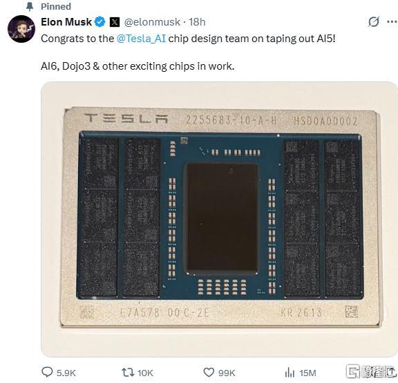 特斯拉芯片设计团队成功完成了下一代AI5自动驾驶芯片的流片,同时AI6、Dojo3以及其他芯片也在紧锣密鼓地推进中。