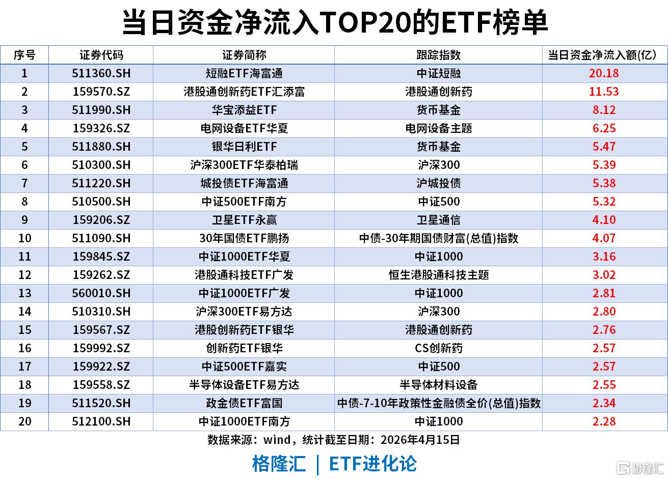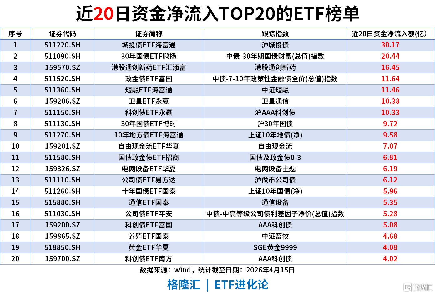 短融ETF海富通以20.18亿净流入领跑,港股通创新药ETF汇添富以11.53亿净流入位列第二,港股通创新药ETF银华、创新药ETF银华等医药品种合计流入超16亿。