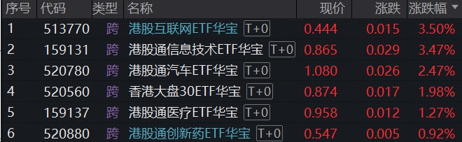 宁德时代绩后飙升,引爆电池产业链,聚焦港股新能源汽车的港股通汽车ETF(520780)场内价格涨超2%,创历史收盘新高。继昨日猛烈上攻,医药医疗低调跟涨,港股医疗核心资产——港股通医疗ETF(159137)场内涨逾1%;100%创新药研发标的——港股通创新药ETF(520880)收涨0.92%喜提连阳。