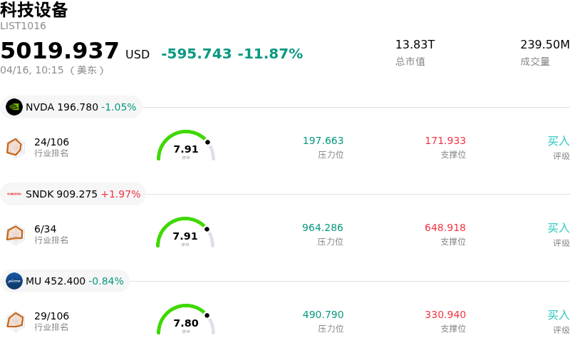 Lumentum Holdings Inc (LITE) 盘中上涨6.55%, 所属行业科技设备下跌11.87% ,公司涨幅跑赢行业涨幅,行业成交额前三股票 英伟达 (NVDA) 下跌 1.05%;闪迪 (SNDK) 上涨 1.97%;美光科技 (MU) 下跌 0.84%。