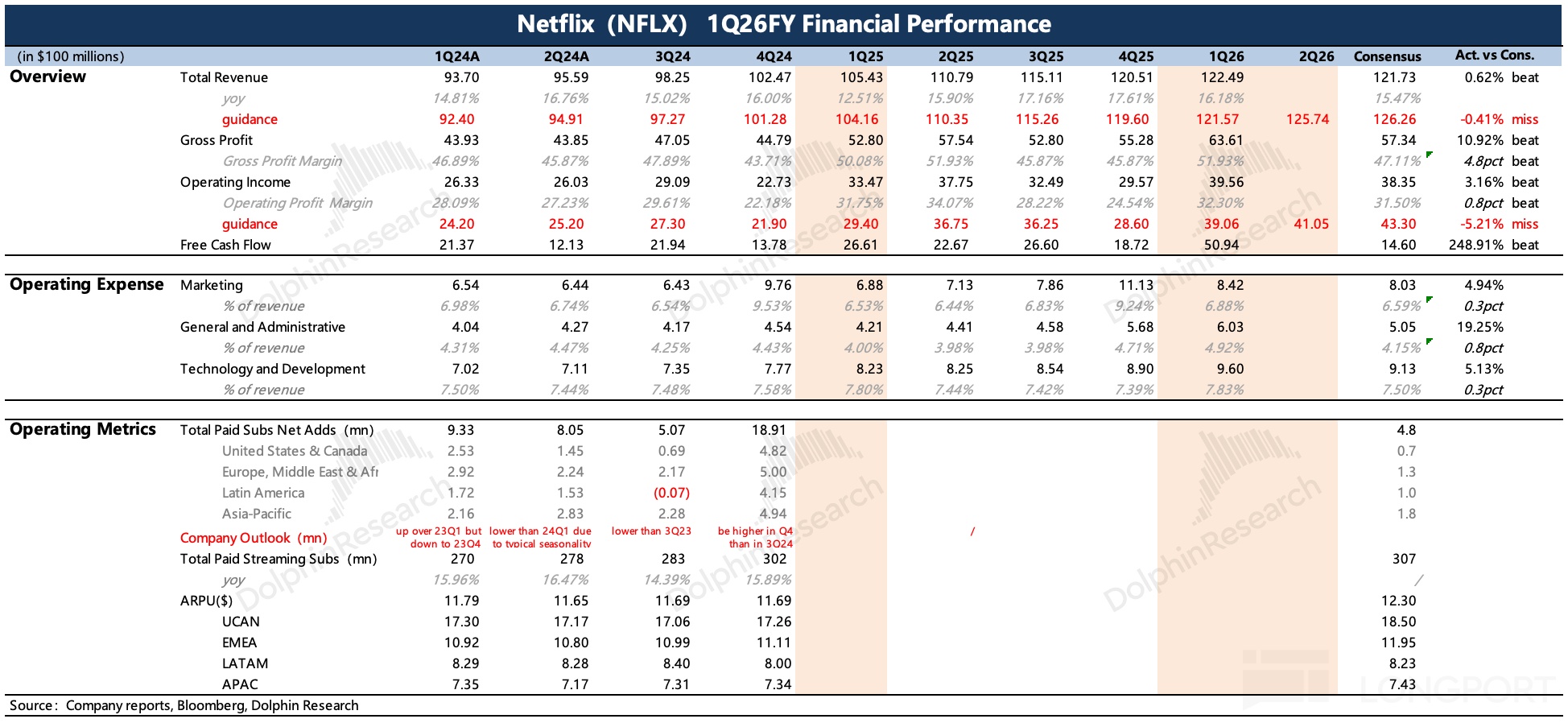 $奈飞(NFLX.US) 一季报再次因指引 “暴雷”, 尽管当季超预期的表现变相印证了管理层指引一贯保守的风格。