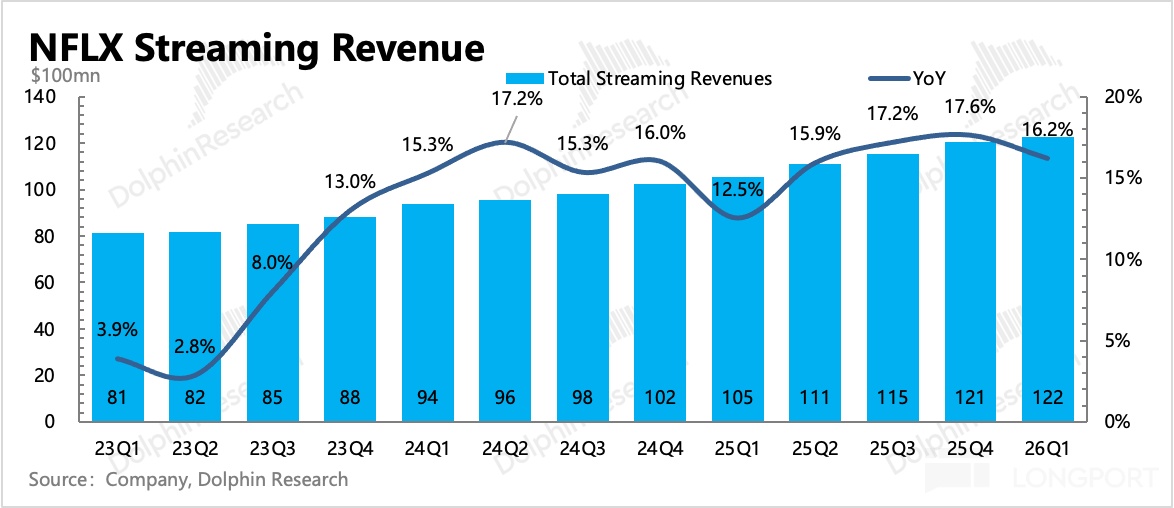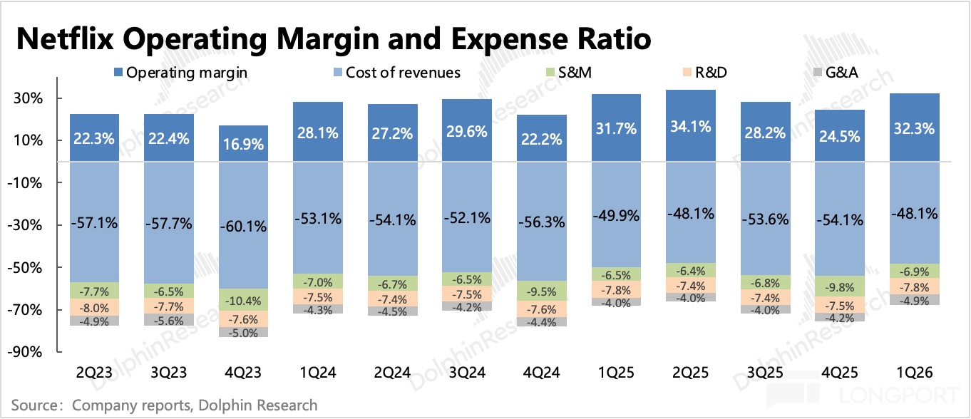 对今年全年的利润率水平,公司也没做调整,还是 31.5%(同比 2pct)。但上季度管理层提及,收购 WBD 对全年的利润率影响 0.5pct,因此机构在奈飞放弃收购 WBD 后,已经对利润率的预期提高到了 32% 左右。