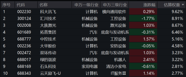 【机器人ETF汇添富(159213)标的指数前十大成分股】