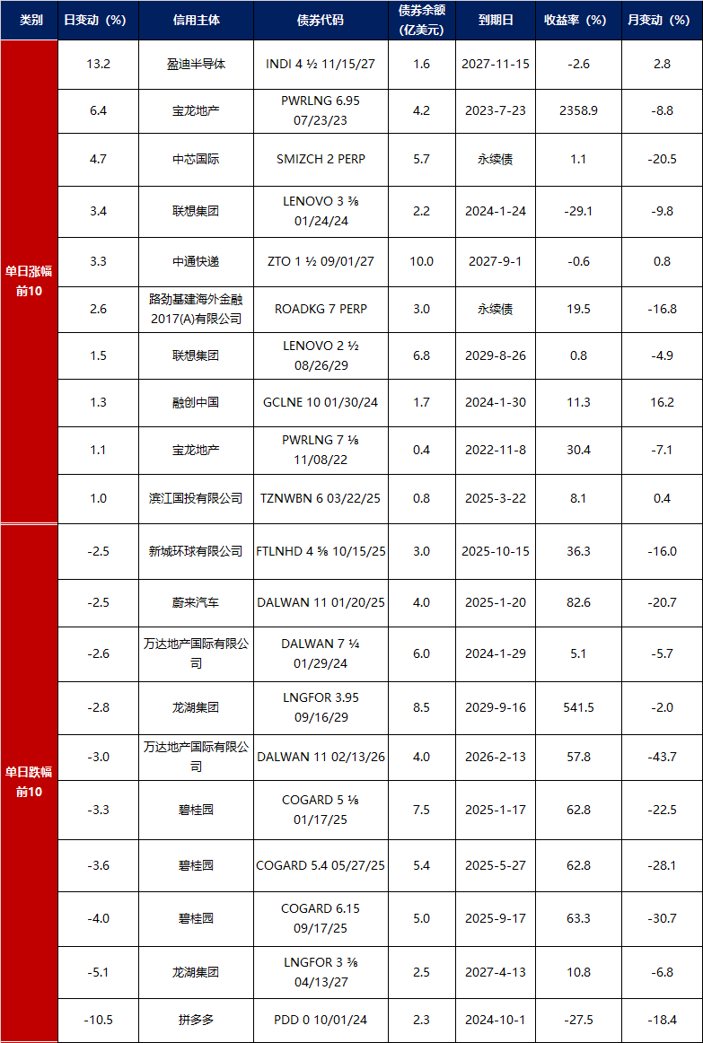 4月21日,1只产业债成交价格偏离幅度超10%,为“H2万科02”涨超17%。