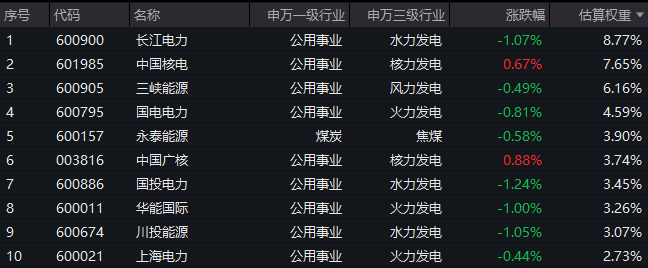 【电力ETF汇添富(516370)标的指数前十大成分股】