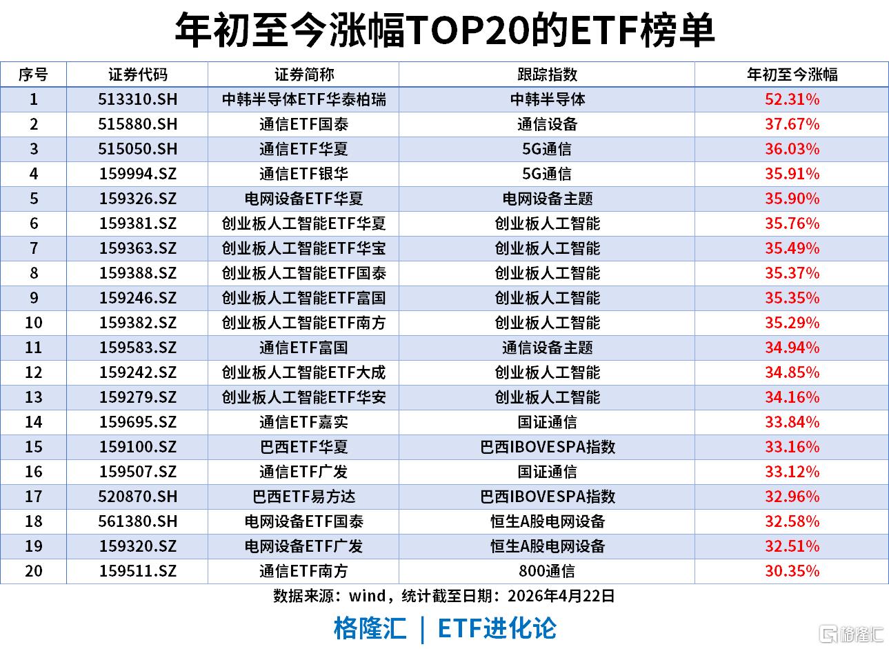 年初至今涨幅(截至2026年4月22日)
