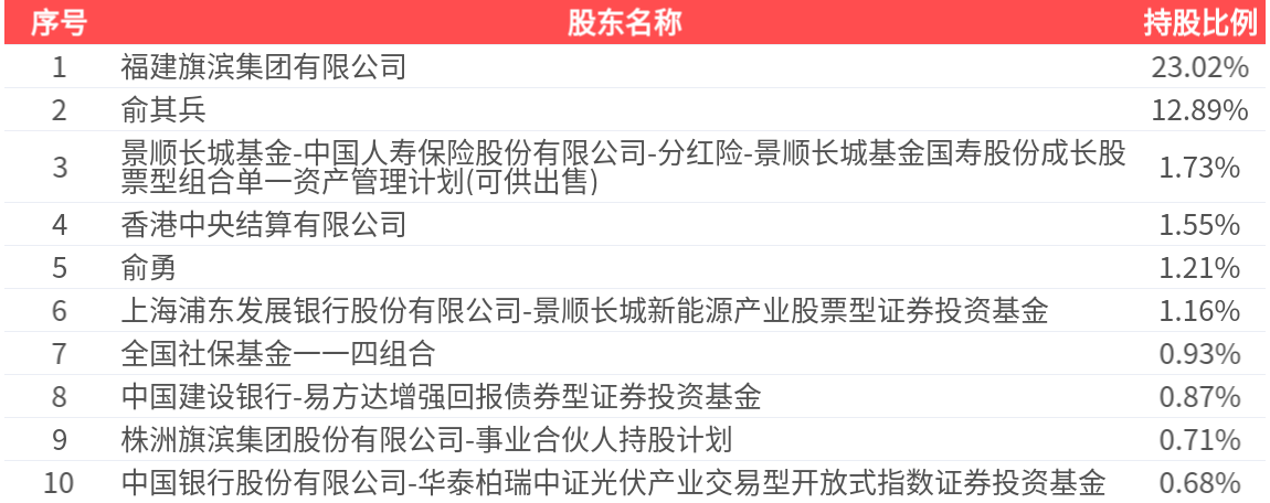 公司股东户数为10.20万户,前十大股东持股数量为13.24亿股,占总股本比例为44.75%,前十大股东持股情况如下: