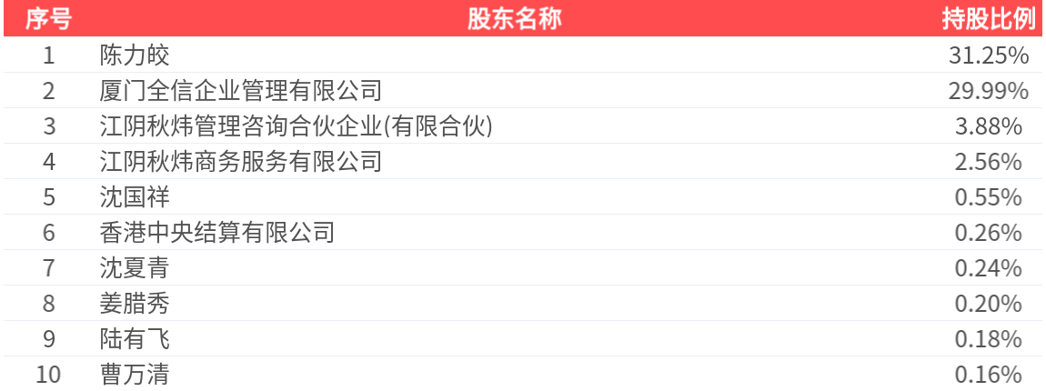 公司股东户数为3.33万户,前十大股东持股数量为3.00亿股,占总股本比例为69.28%,前十大股东持股情况如下: