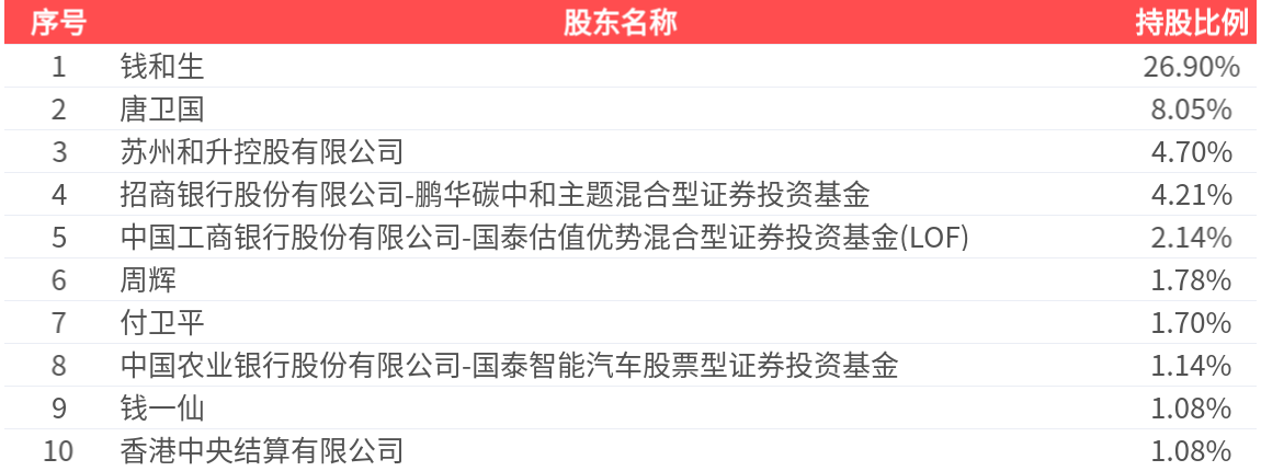 公司股东户数为1.04万户,前十大股东持股数量为5917.84万股,占总股本比例为52.78%,前十大股东持股情况如下: