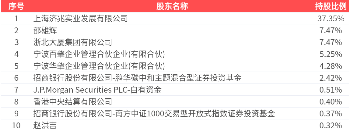 公司股东户数为2.52万户,前十大股东持股数量为1.60亿股,占总股本比例为65.84%,前十大股东持股情况如下: