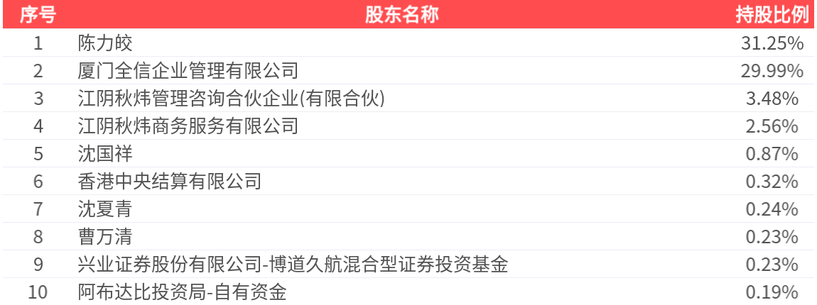 公司股东户数为2.97万户,前十大股东持股数量为3.00亿股,占总股本比例为69.36%,前十大股东持股情况如下: