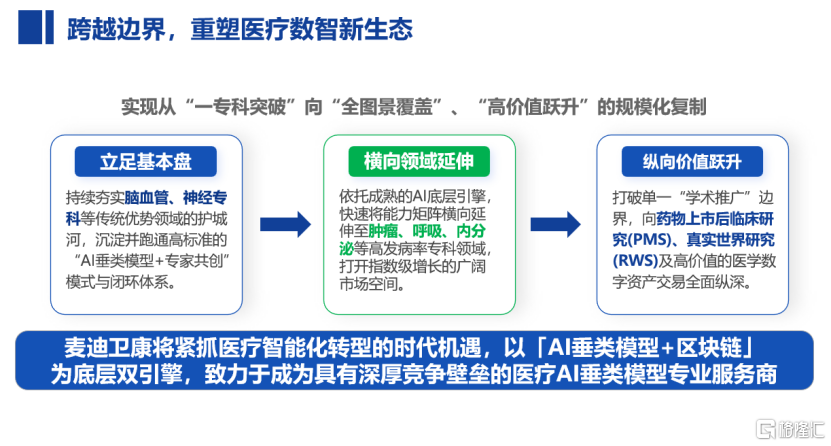麦迪卫康拥有覆盖全国超3000家三级医院的服务网络,参与众多三甲医院及卒中中心、胸痛中心等国家级专科体系建设工作。当元宇鼎诚的技术底座接入这张网络,形成的将是“医院合作网络 专科AI模型 合规数据确权”的三位一体壁垒。配合已获数据服务商资质和区块链确权能力,“技术壁垒→数据沉淀→资产增值”的正向闭环已然成型。