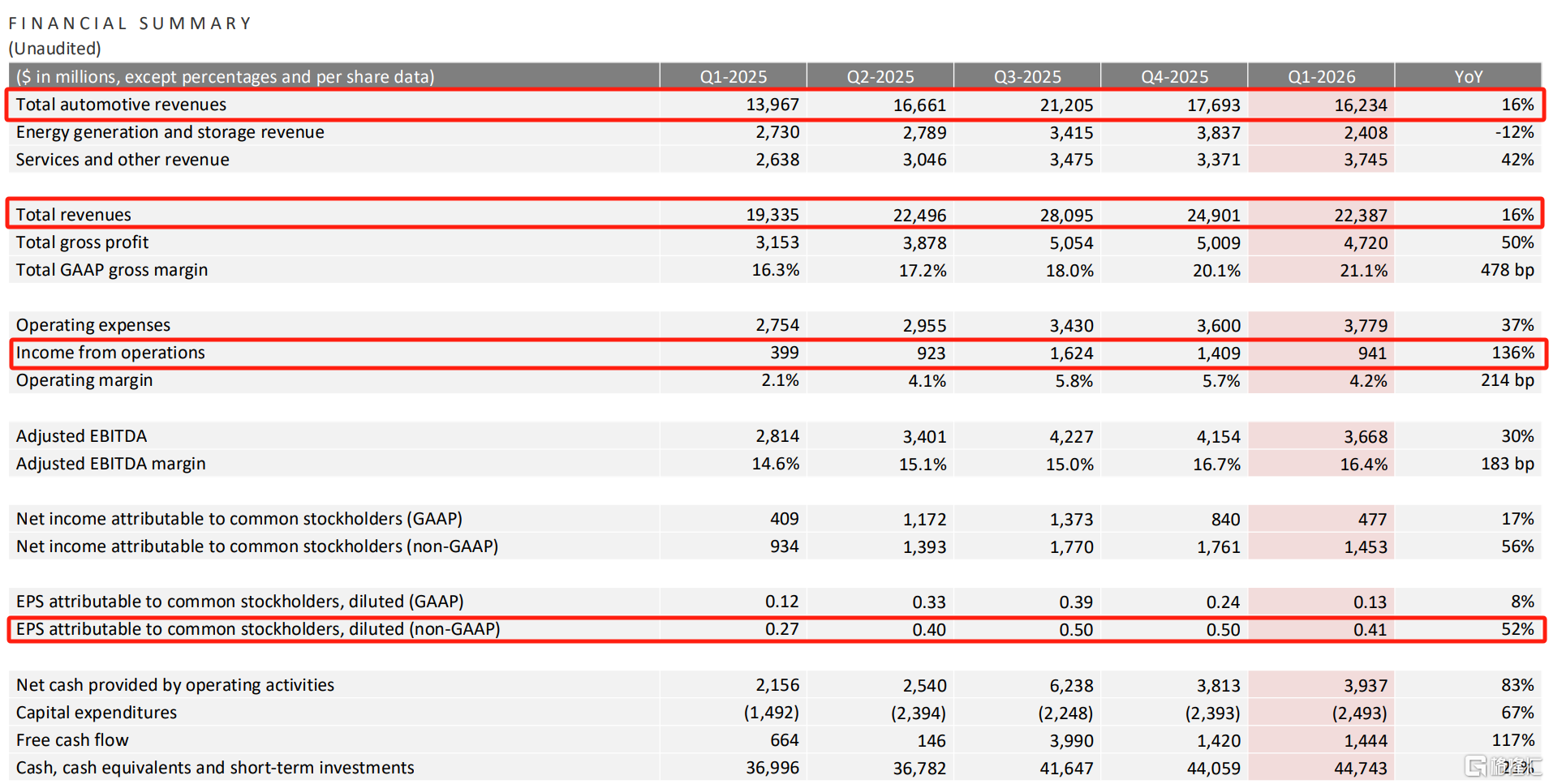 当地时间4月22日,特斯拉发布2026年第一季度财报。