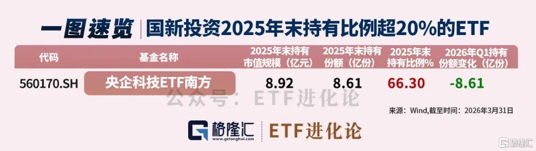 国新投资去年年末持有比例超20%的ETF只有一只,一季度清仓央企科技ETF南方,赎回8.61亿份。