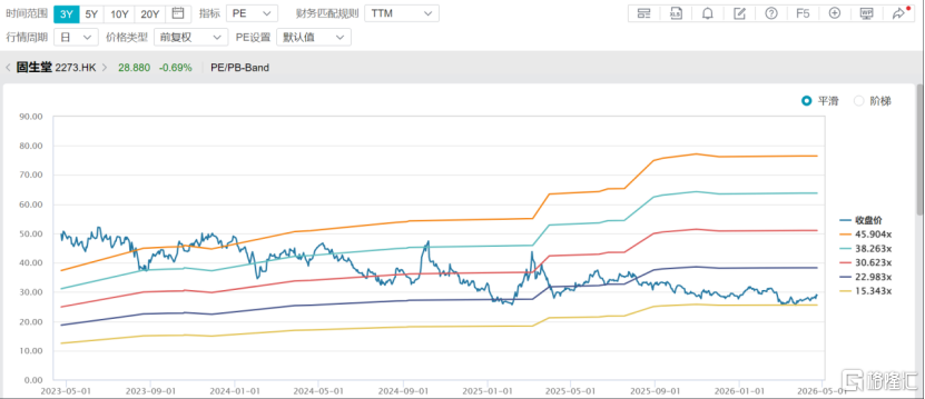 根据WIND数据显示,截至4月23日,固生堂股价29.08港元,PE(TTM)17.3倍,处于过往五年较低水平,参考WIND一致性预期目标价40.39港元,拥有39.85%的向上增长潜力,估值水平具备较强吸引力。