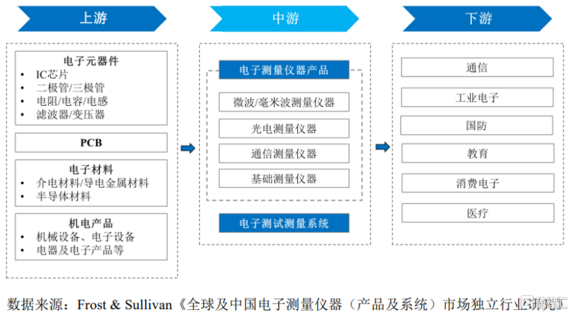 电子测量仪器产品及系统产业链,图片来源于招股书