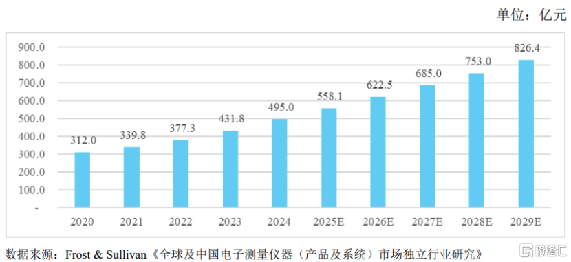 其中,2025年中国电子测量仪器产品及测试测量系统市场规模为558.1亿元,预计到2029年将增长至826.4亿元,对应年均复合增长率为10.31%。