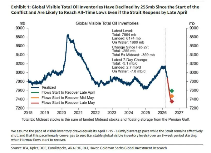 即便在4月底霍尔木兹航运顺利恢复的乐观情景下,全球显性石油库存仍大概率跌至历史最低水平