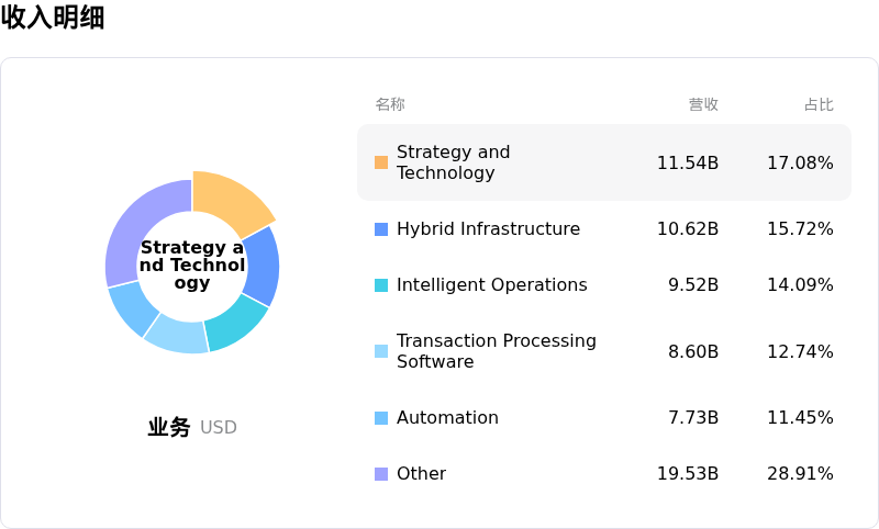 IBM国际商业机器 (IBM) 处于软件与信息技术服务行业,最新年度营业收入$67.53B,处于行业7,净利润$10.59B,处于行业11。「公司简介」