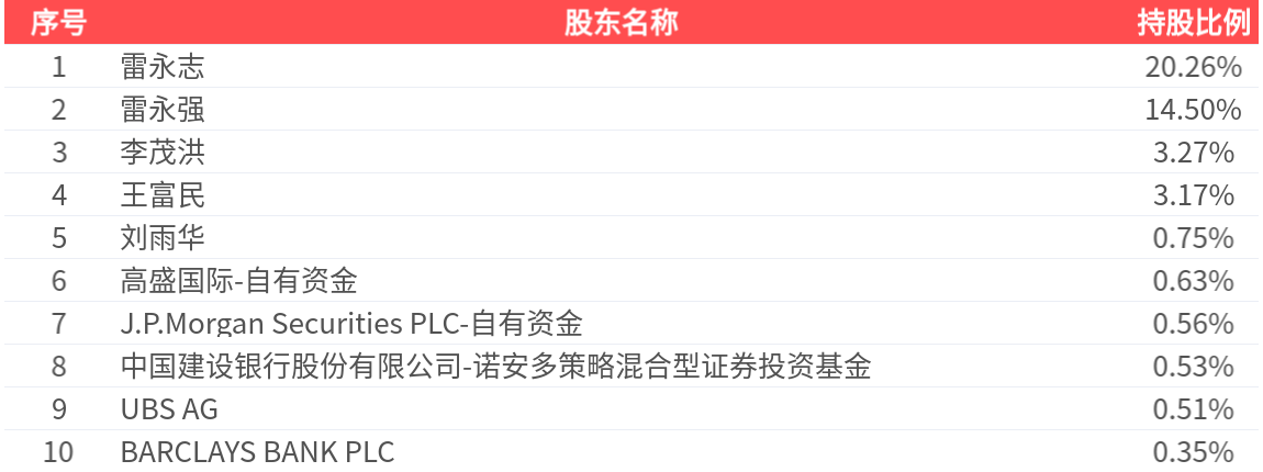 公司股东户数为2.02万户,前十大股东持股数量为6533.31万股,占总股本比例为44.54%,前十大股东持股情况如下: