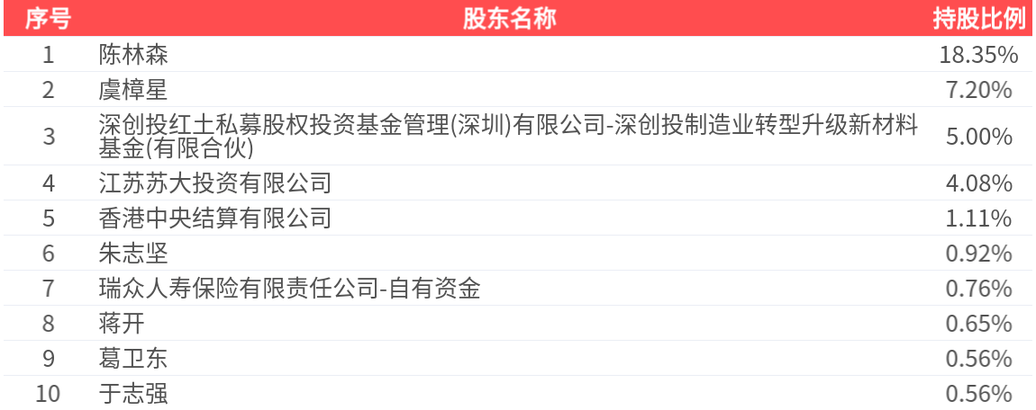 公司股东户数为3.45万户,前十大股东持股数量为1.02亿股,占总股本比例为39.20%,前十大股东持股情况如下: