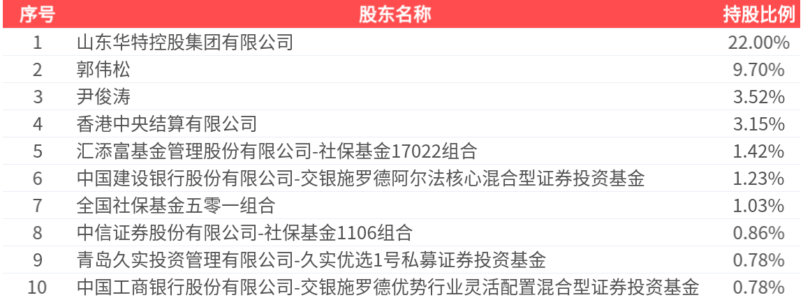 公司股东户数为2.38万户,前十大股东持股数量为1.04亿股,占总股本比例为44.46%,前十大股东持股情况如下: