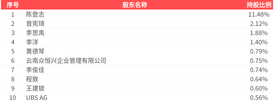公司股东户数为2.96万户,前十大股东持股数量为5234.73万股,占总股本比例为20.96%,前十大股东持股情况如下: