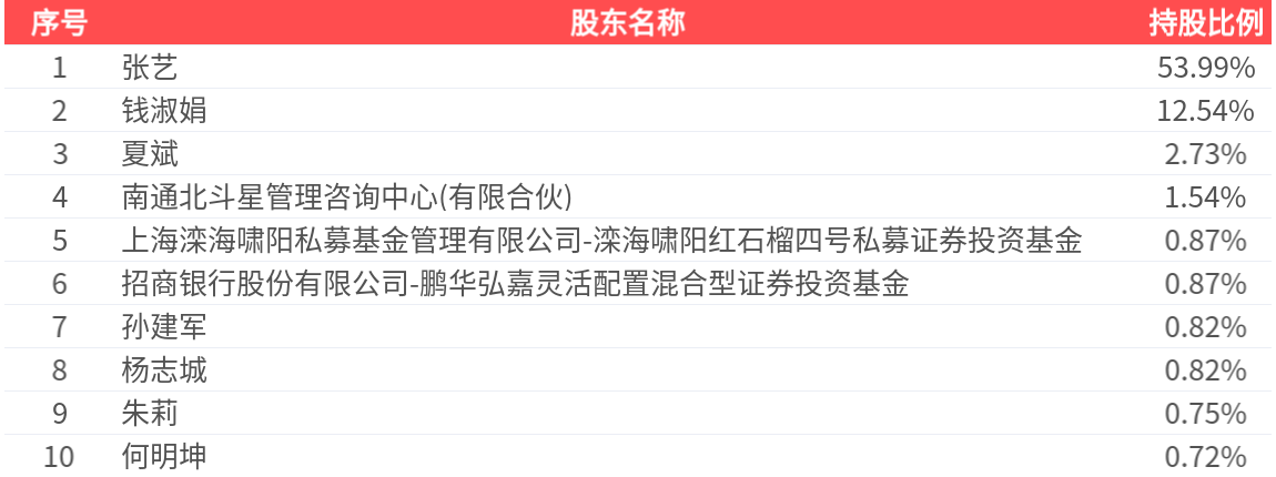 公司股东户数为4627户,前十大股东持股数量为1.09亿股,占总股本比例为75.64%,前十大股东持股情况如下: