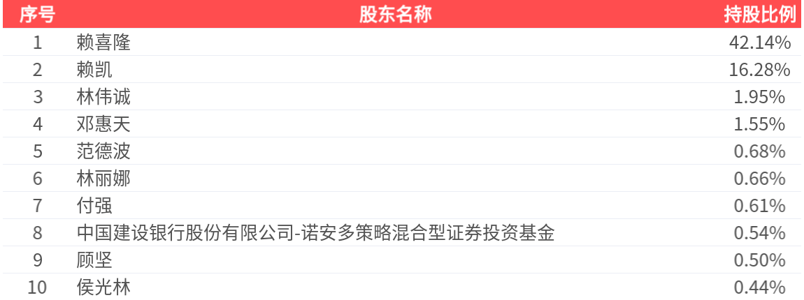 公司股东户数为7928户,前十大股东持股数量为3364.72万股,占总股本比例为65.37%,前十大股东持股情况如下: