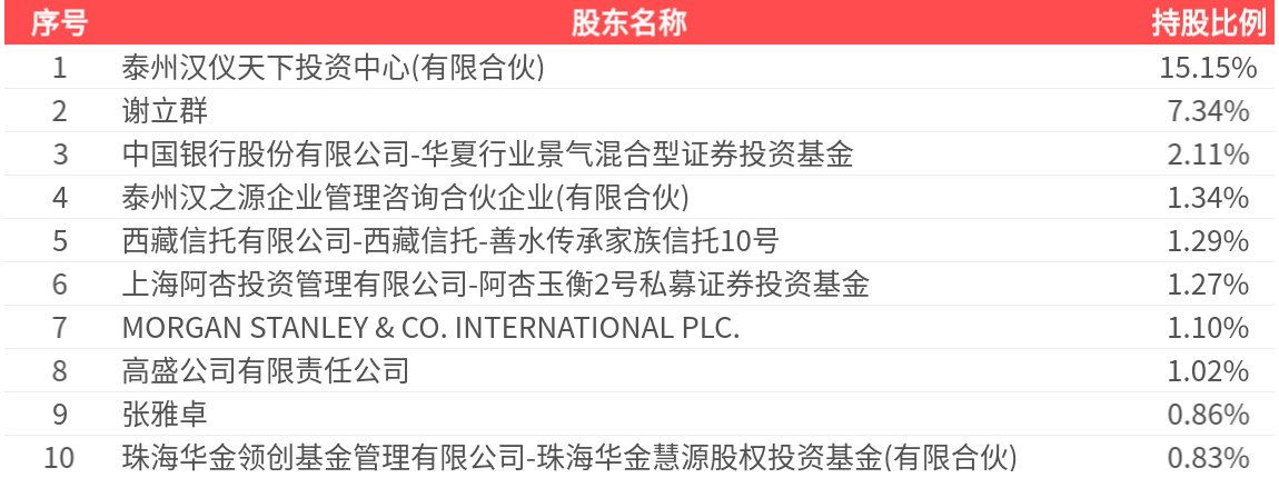 公司股东户数为1.08万户,前十大股东持股数量为3231.10万股,占总股本比例为32.31%,前十大股东持股情况如下: